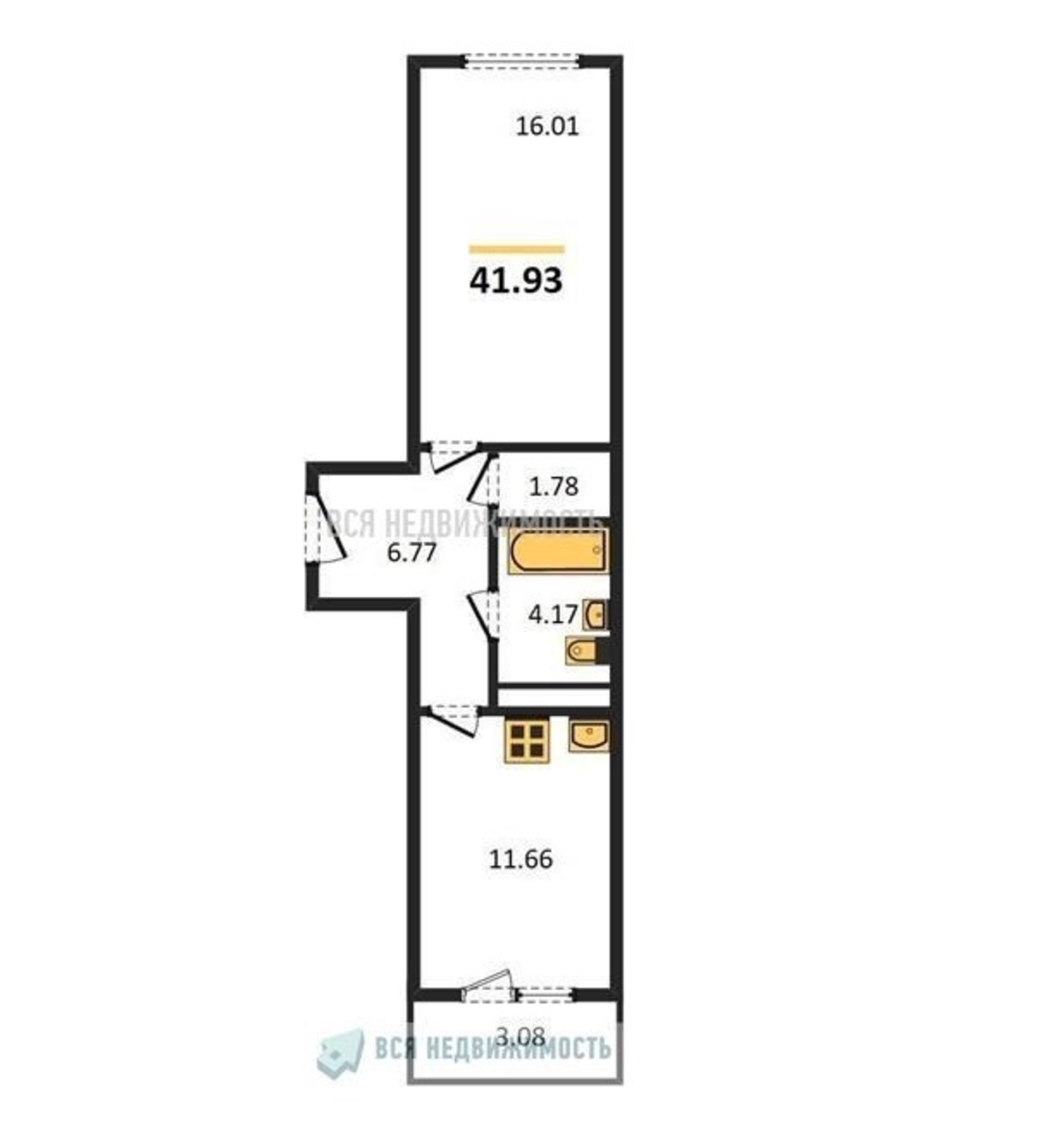 1-комнатная квартира, 41.93 м² 17/18 этаж ID объекта 67878