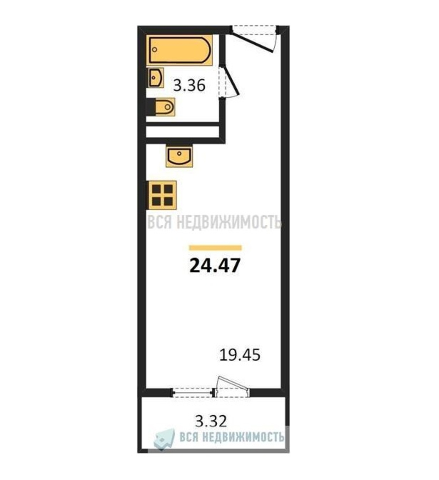 Квартиры-студии, 24.47 м² 13/17 этаж ID объекта 68010