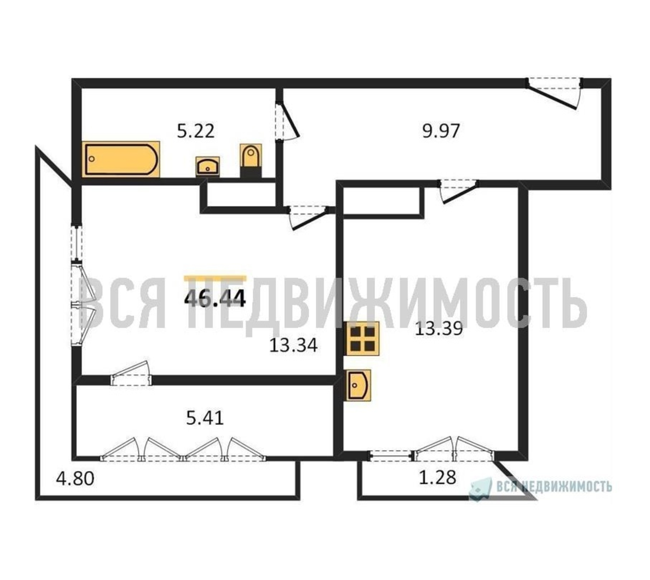 1-комнатная квартира, 46.44 м² 2/8 этаж ID объекта 73628