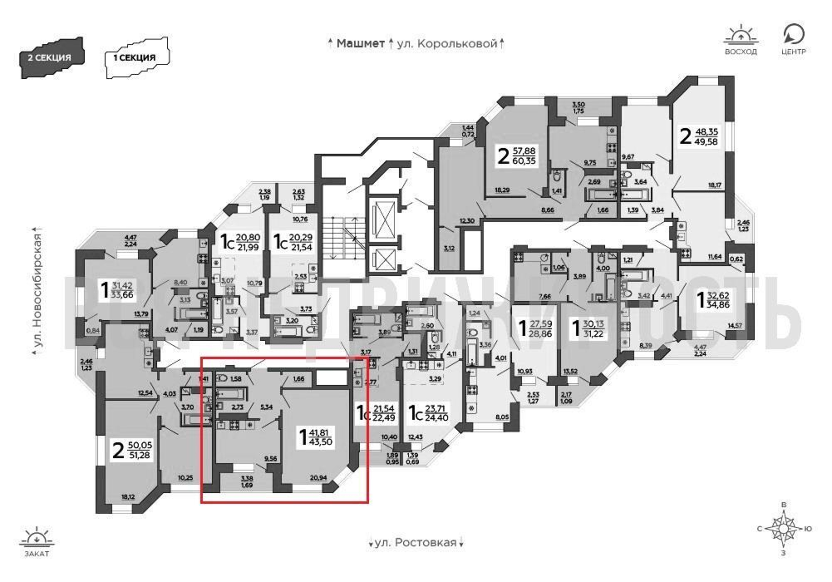 1-комнатная квартира, 43.50 м² 20/20 этаж ID объекта 74039
