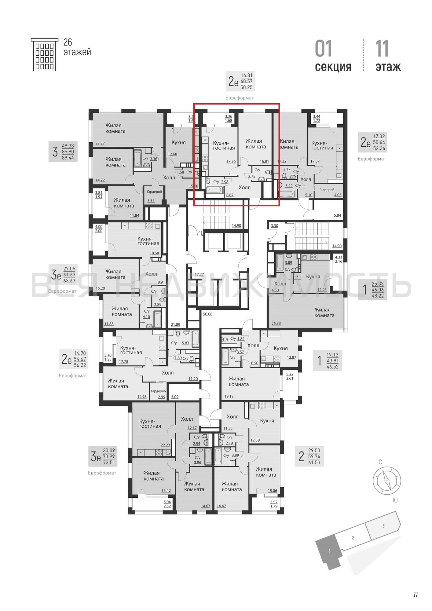 1-комнатная квартира, 50.92 м² 11/25 этаж ID объекта 77723