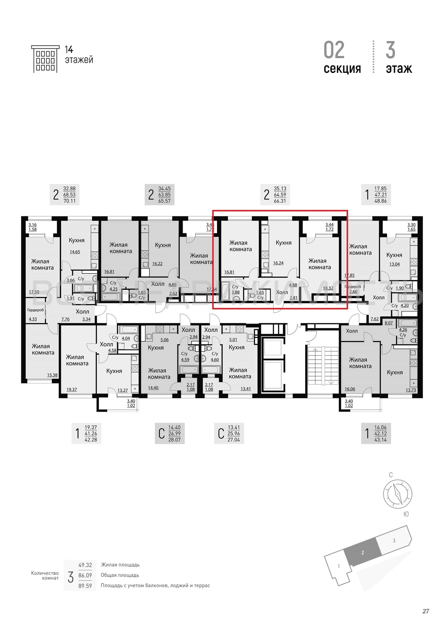 Общая площадь63.71 м²