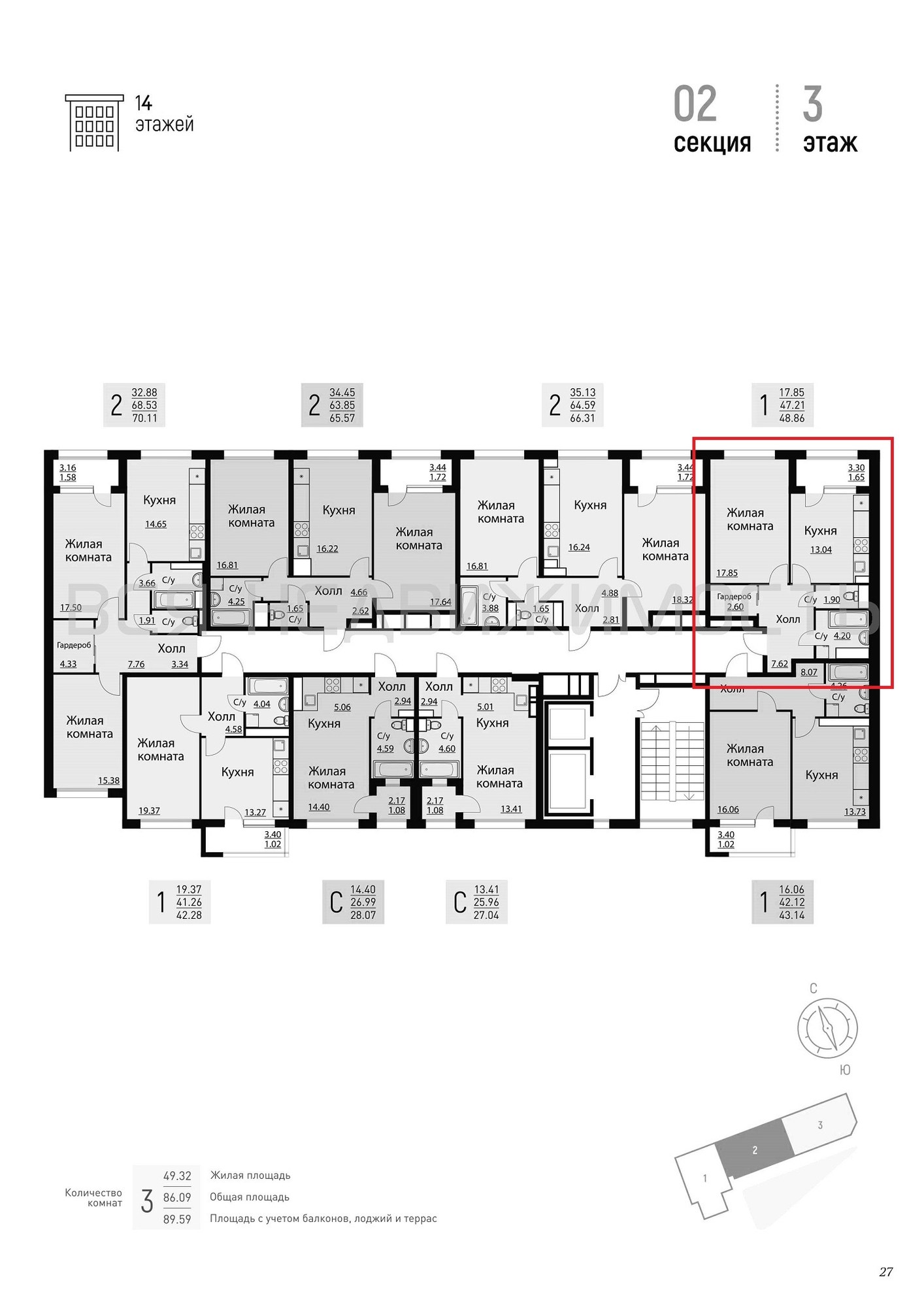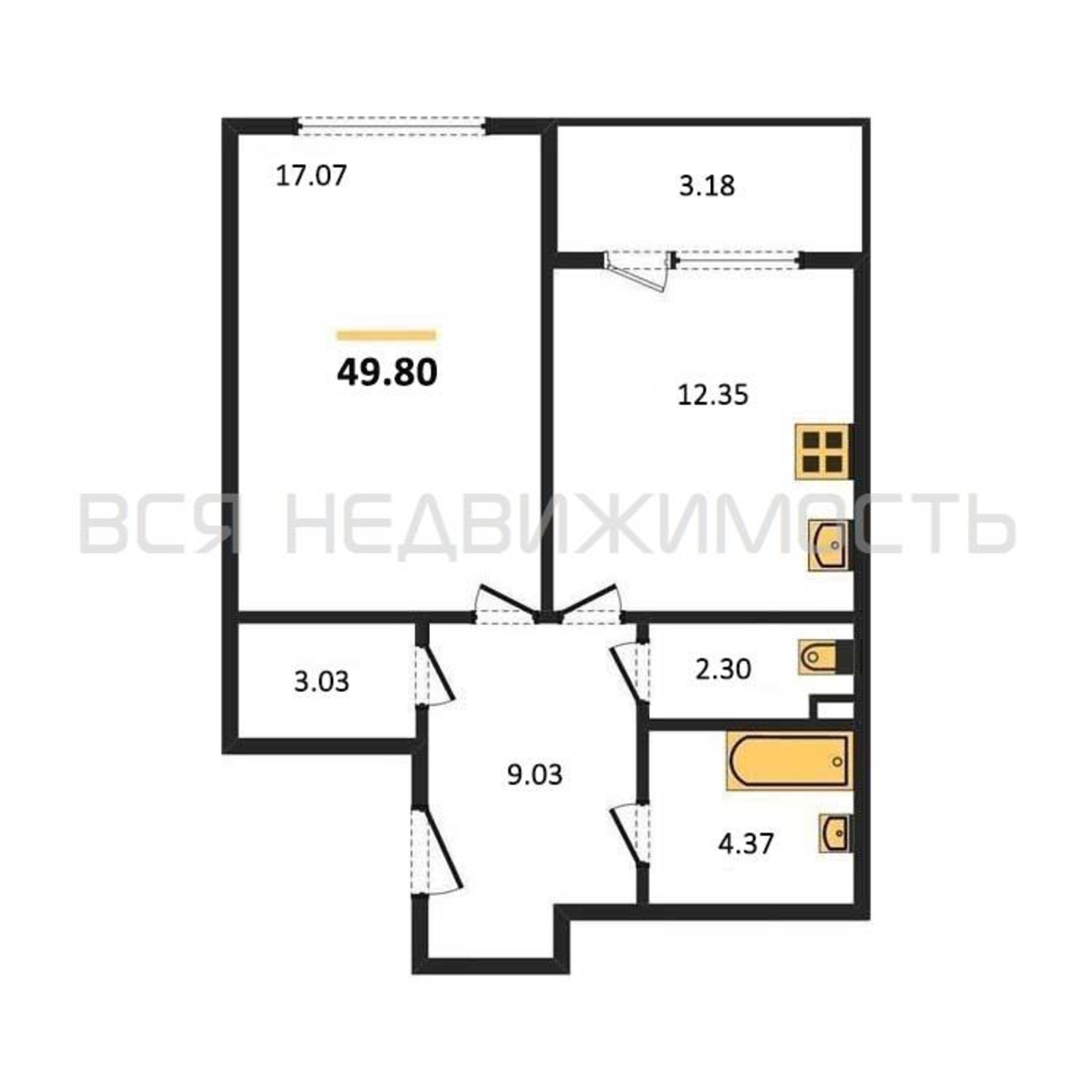1-комнатная квартира, 49.80 м² 3/14 этаж ID объекта 77764