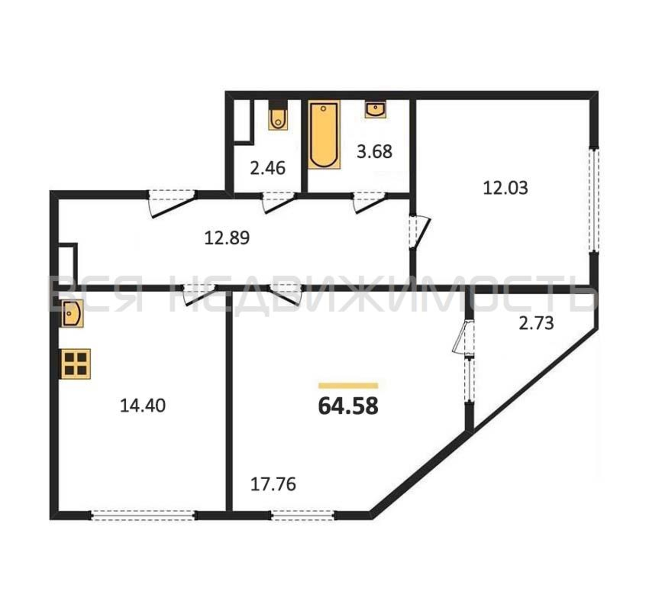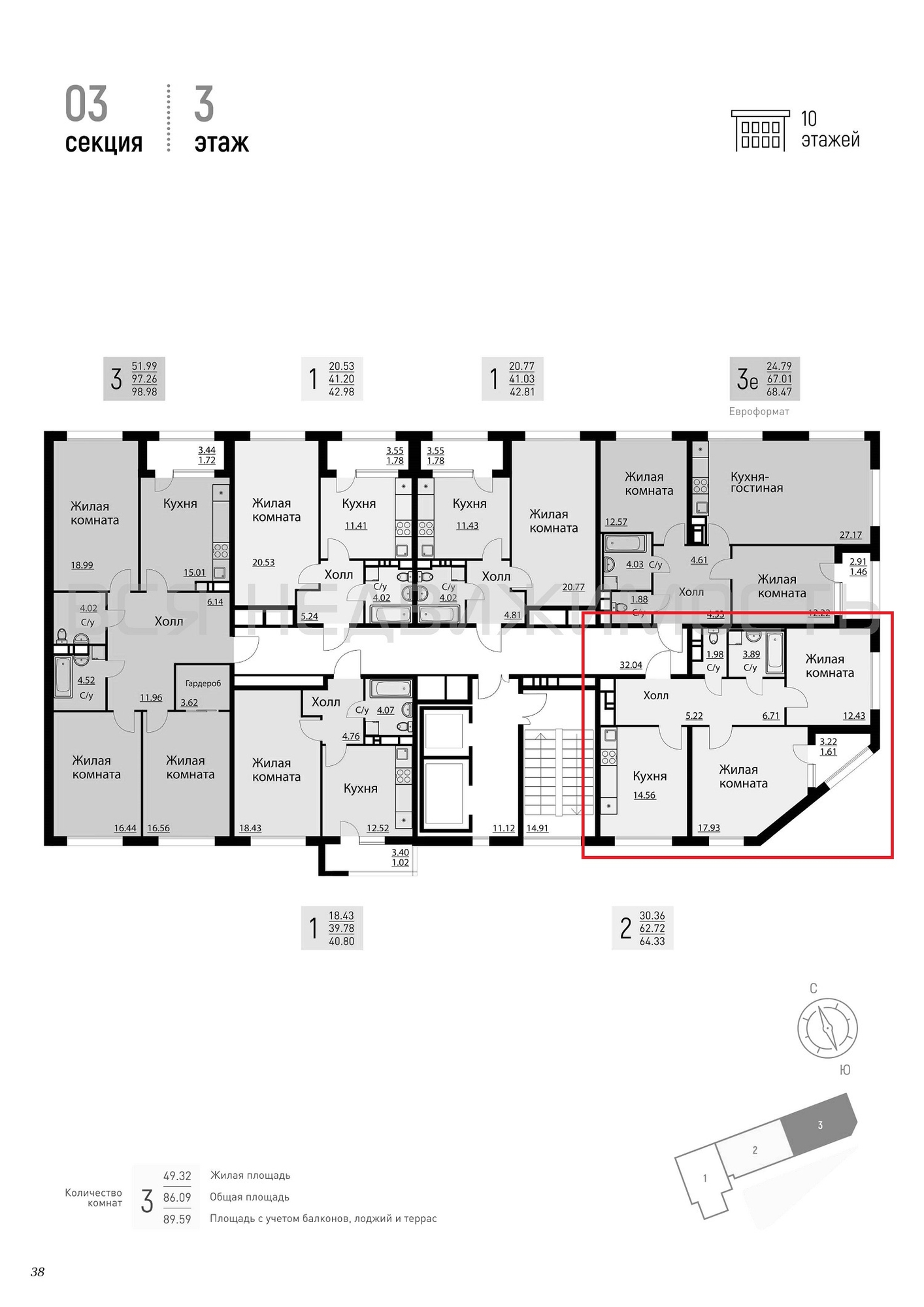 2-комнатная квартира, 64.58 м² 3/10 этаж ID объекта 77770
