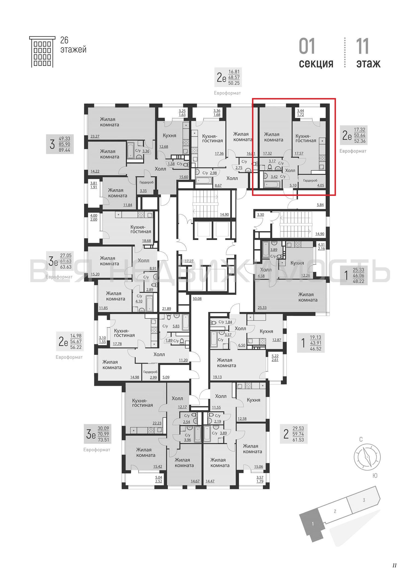 1-комнатная квартира, 51.96 м² 11/25 этаж ID объекта 77824