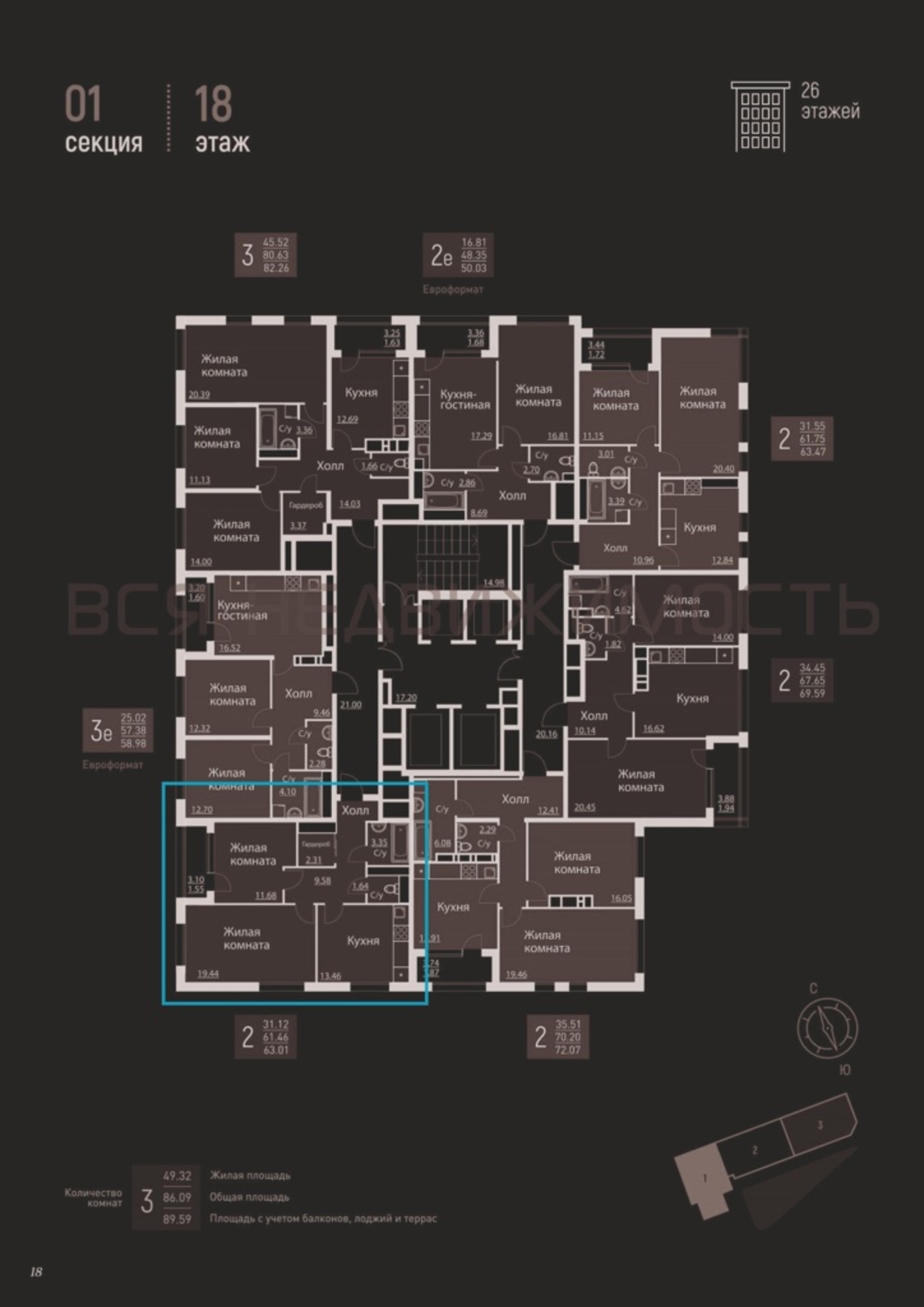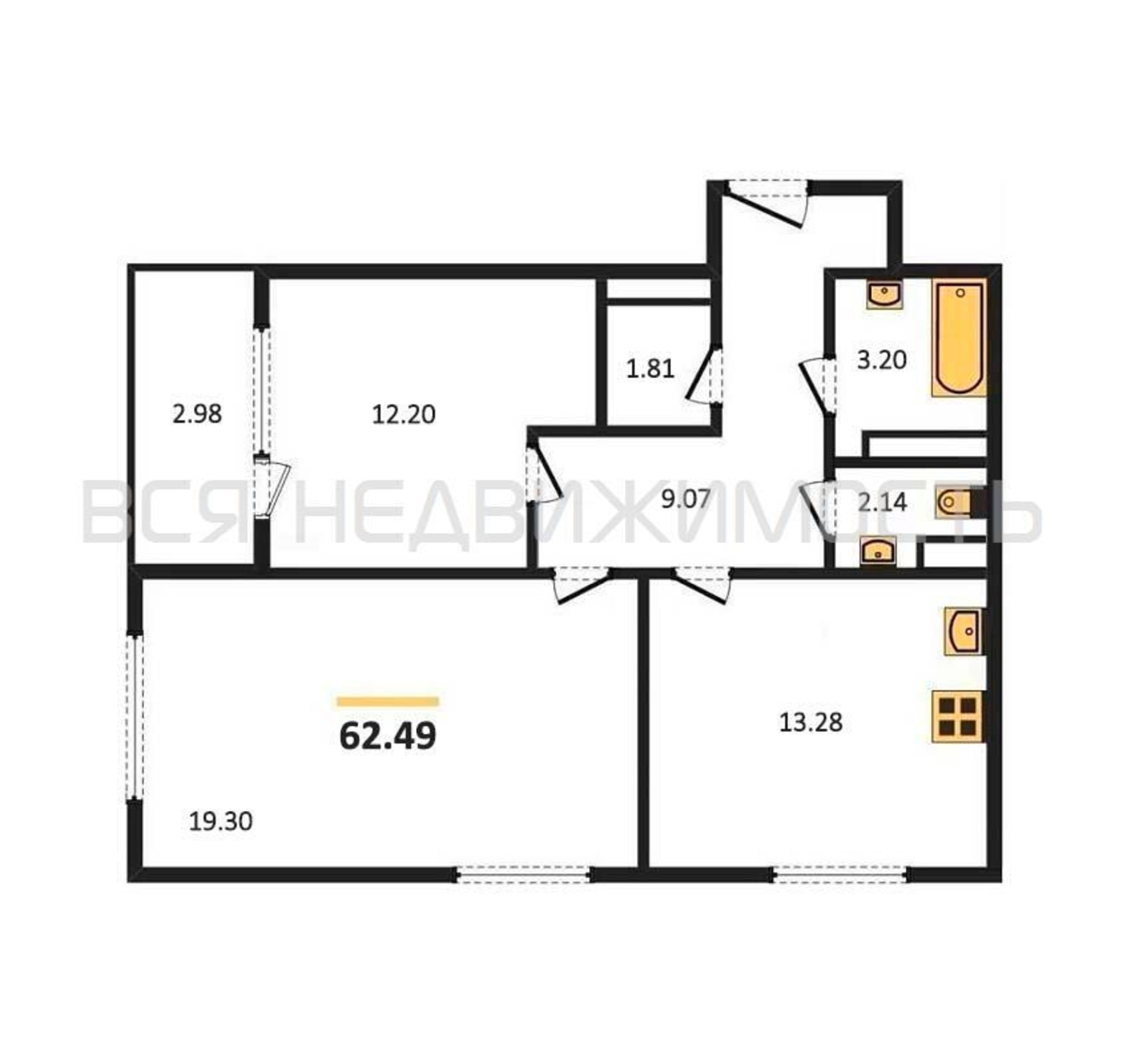 2-комнатная квартира, 62.49 м² 18/25 этаж ID объекта 77859