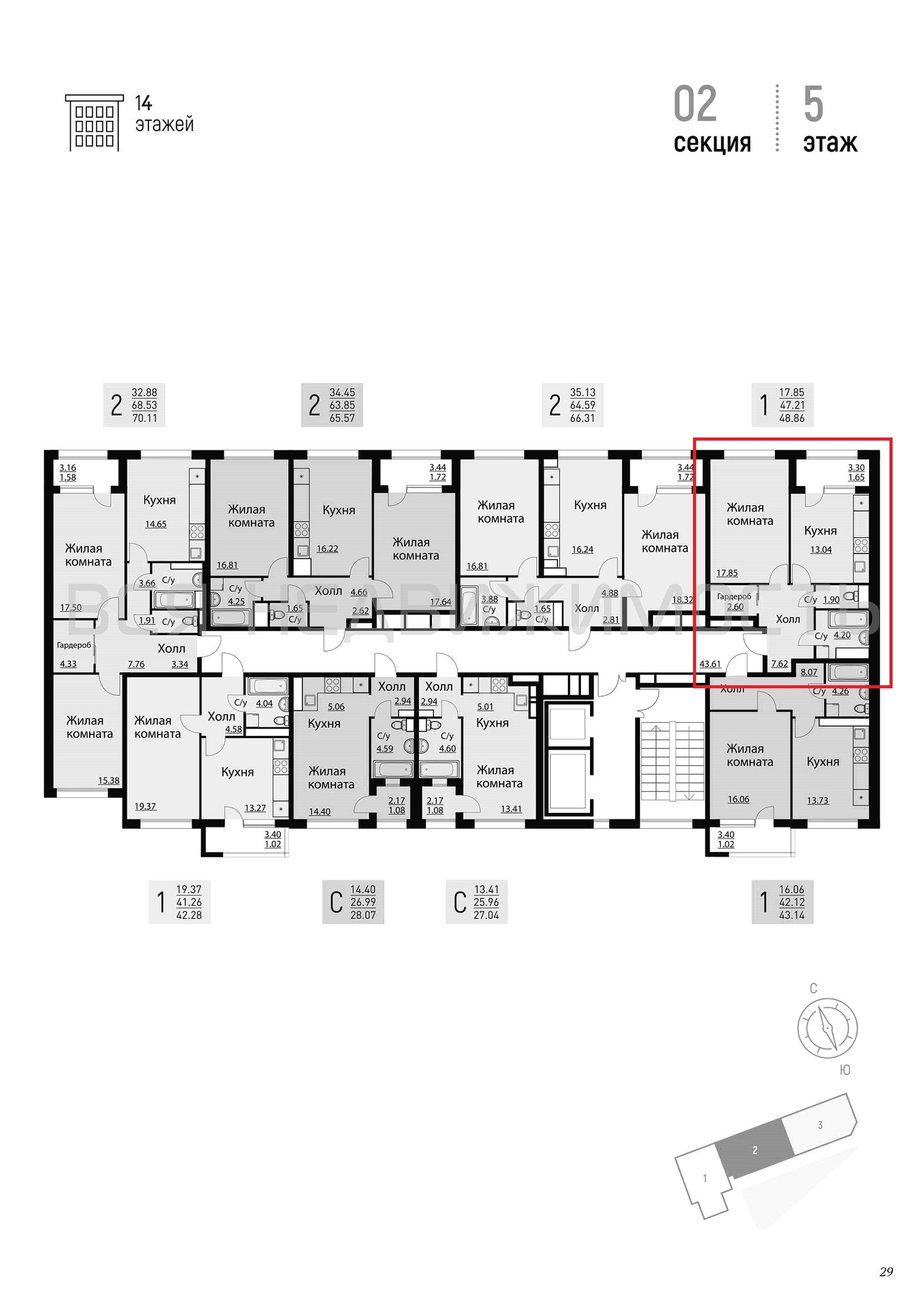 1-комнатная квартира, 49.45 м² 5/14 этаж ID объекта 77925