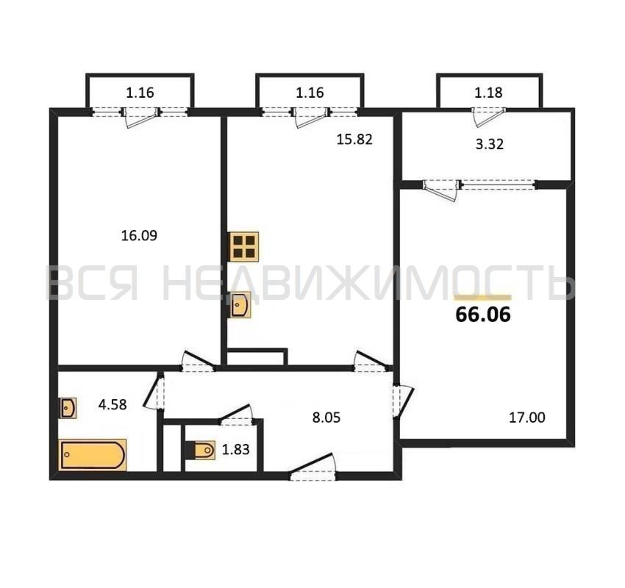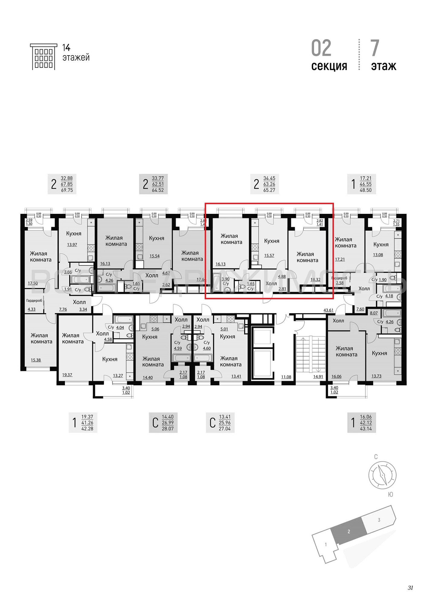 2-комнатная квартира, 66.06 м² 7/14 этаж ID объекта 77938