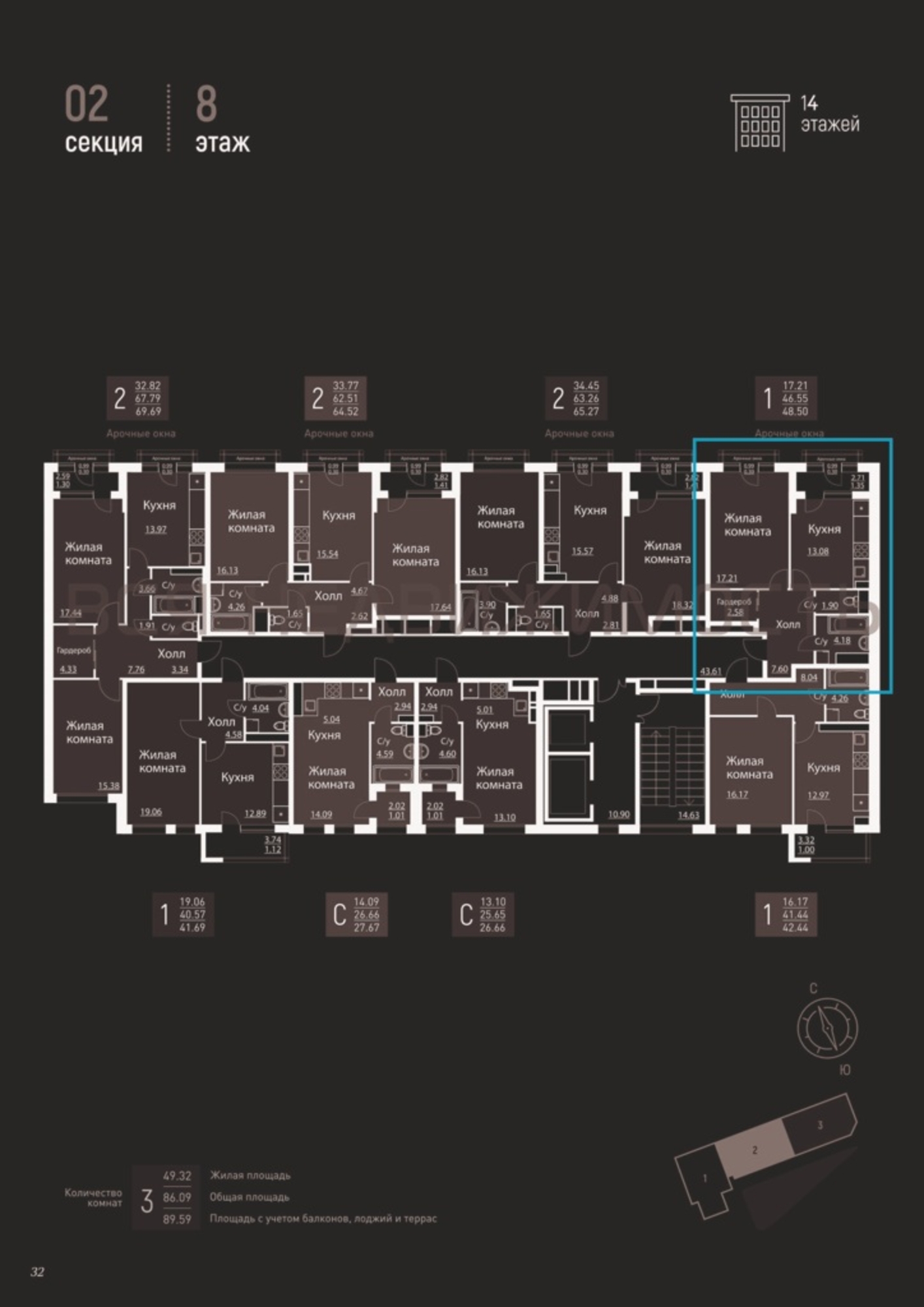 1-комнатная квартира, 49.94 м² 8/14 этаж ID объекта 77947