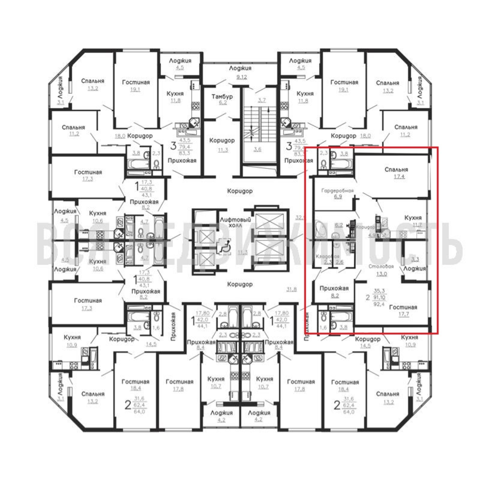 2-комнатная квартира, 92.40 м² 7/25 этаж ID объекта 78098