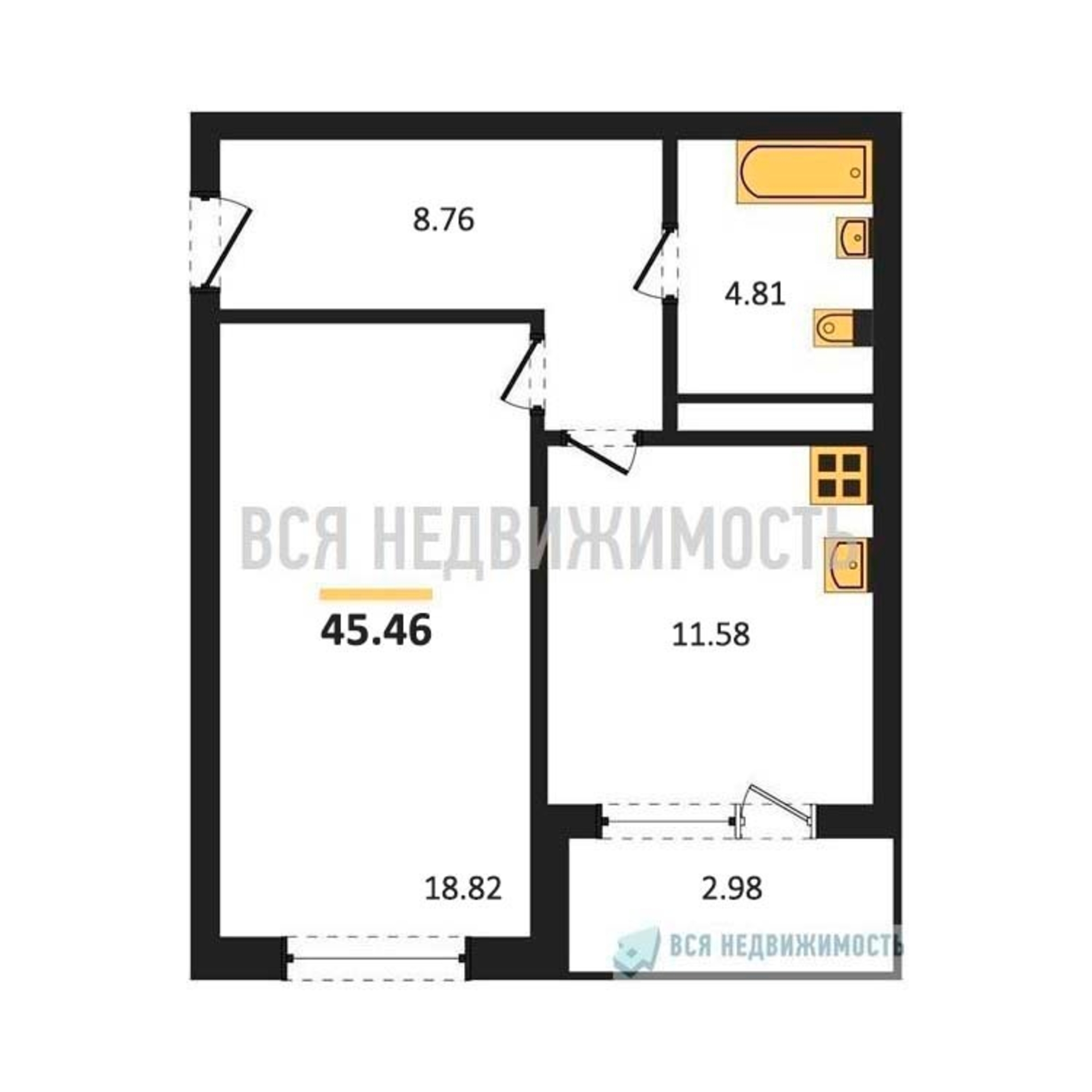 Строительная площадь45.46 м²