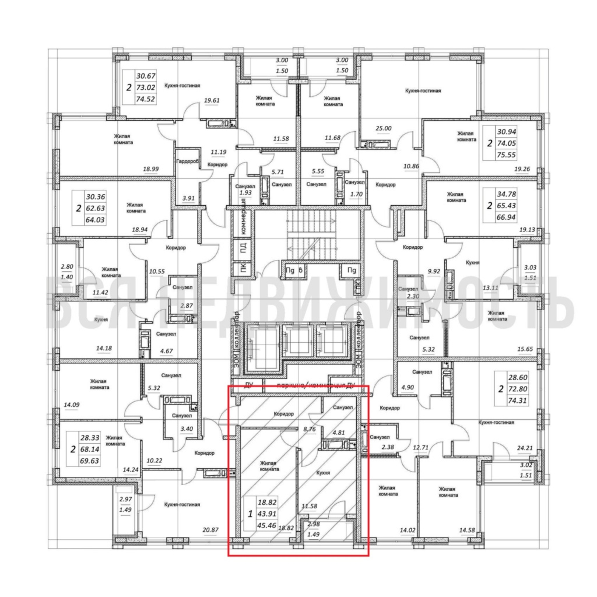 1-комнатная квартира, 45.46 м² 11/18 этаж ID объекта 78553