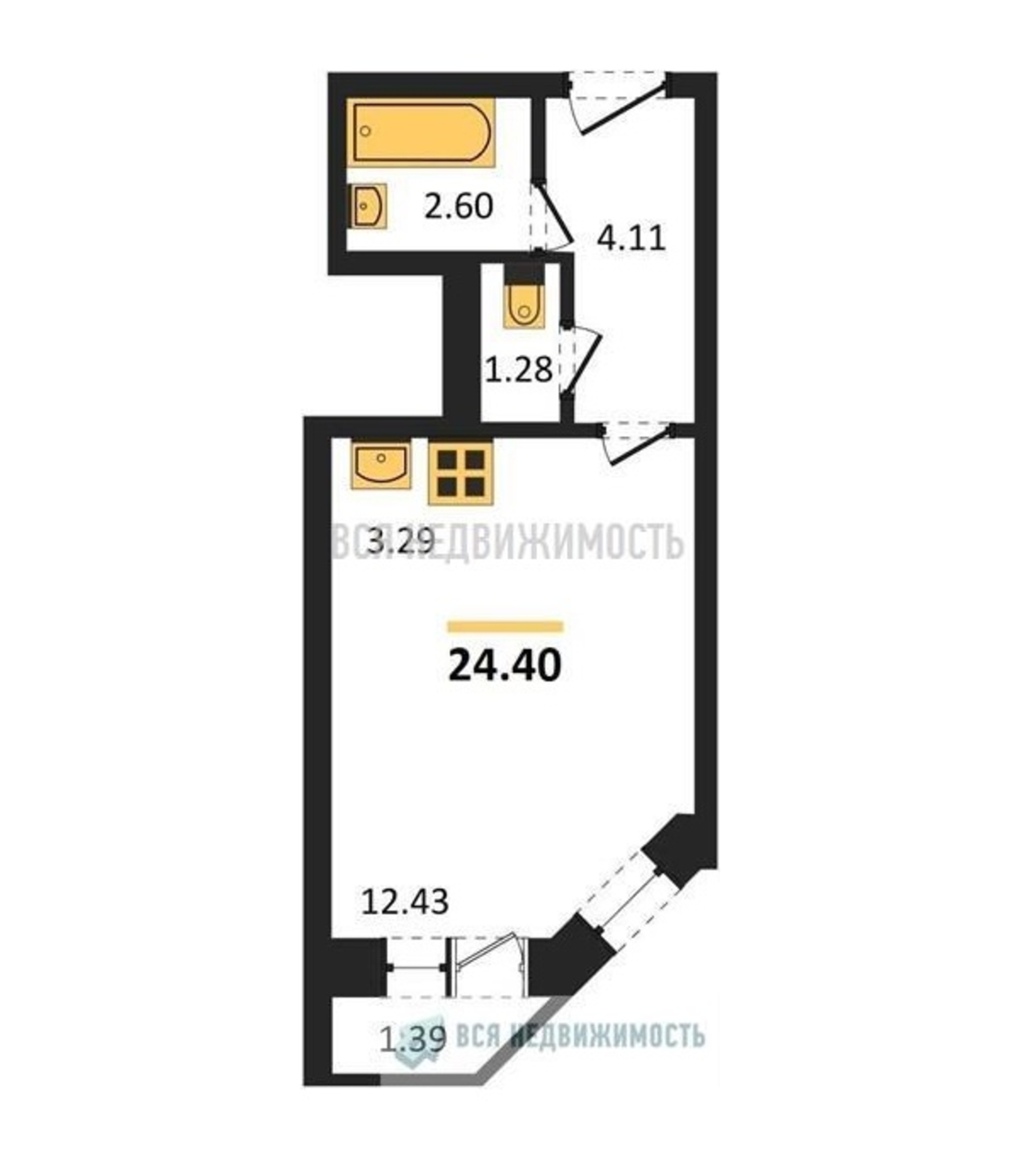 Квартиры-студии, 24.40 м² 15/20 этаж ID объекта 78942