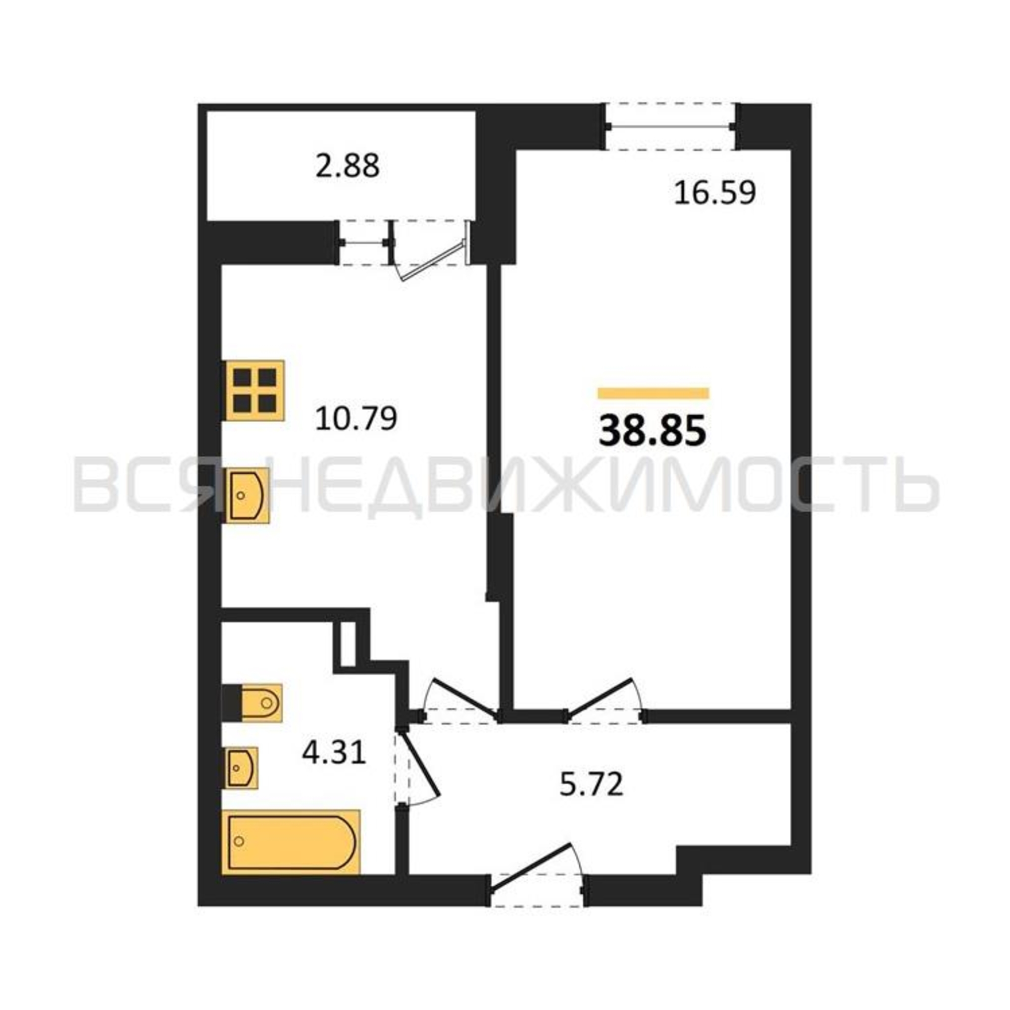 1-комнатная квартира, 38.85 м² 2/27 этаж ID объекта 79781