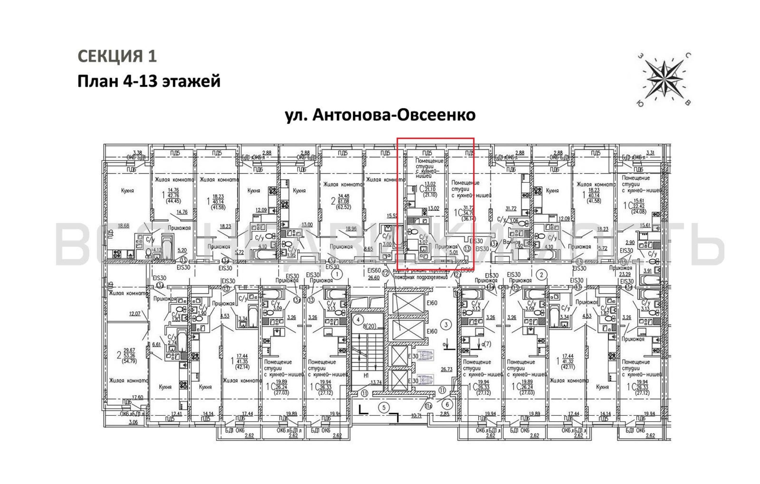 Квартиры-студии, 21.10 м² 6/27 этаж ID объекта 79805