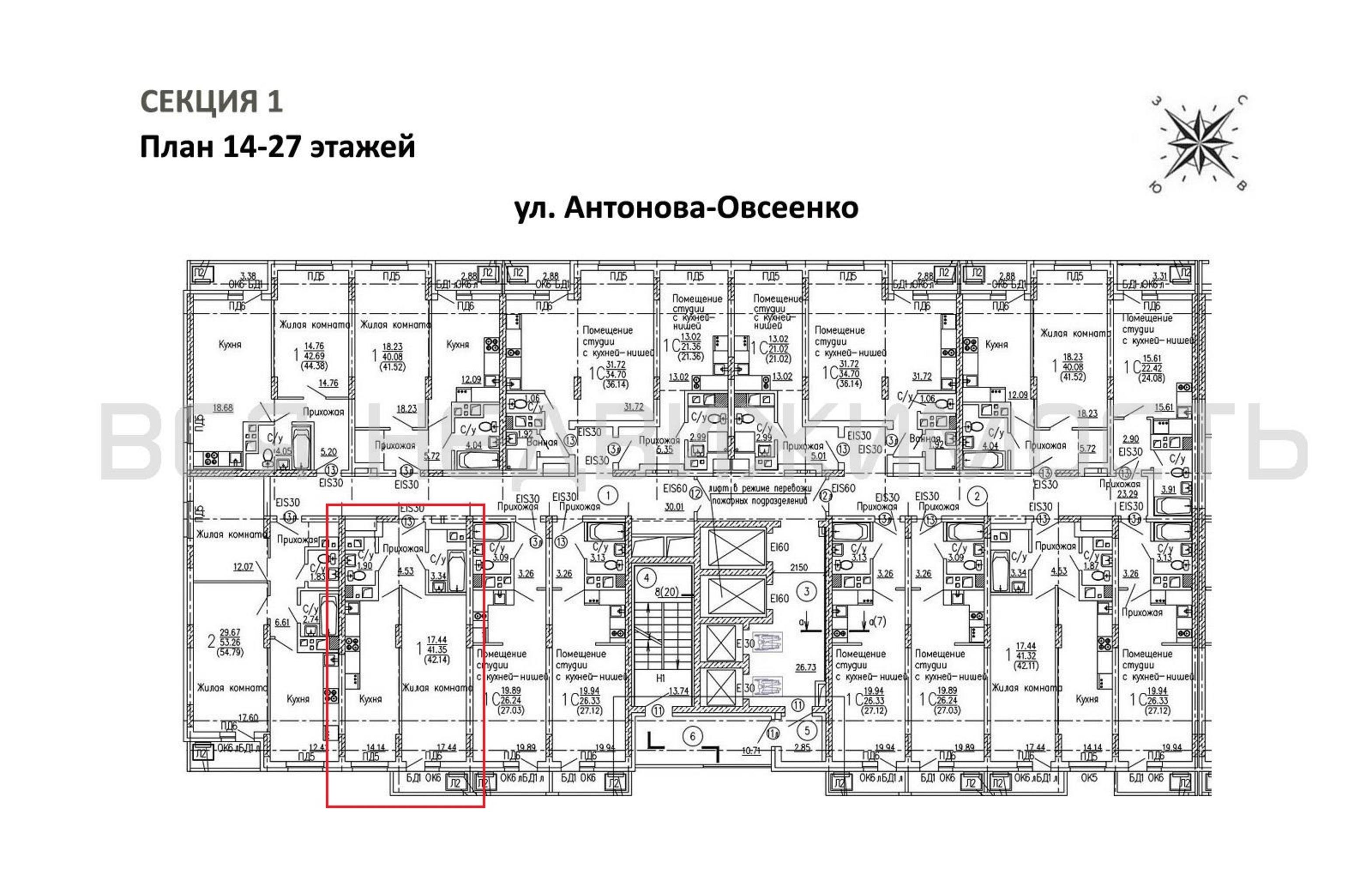 1-комнатная квартира, 42.14 м² 24/27 этаж ID объекта 79892