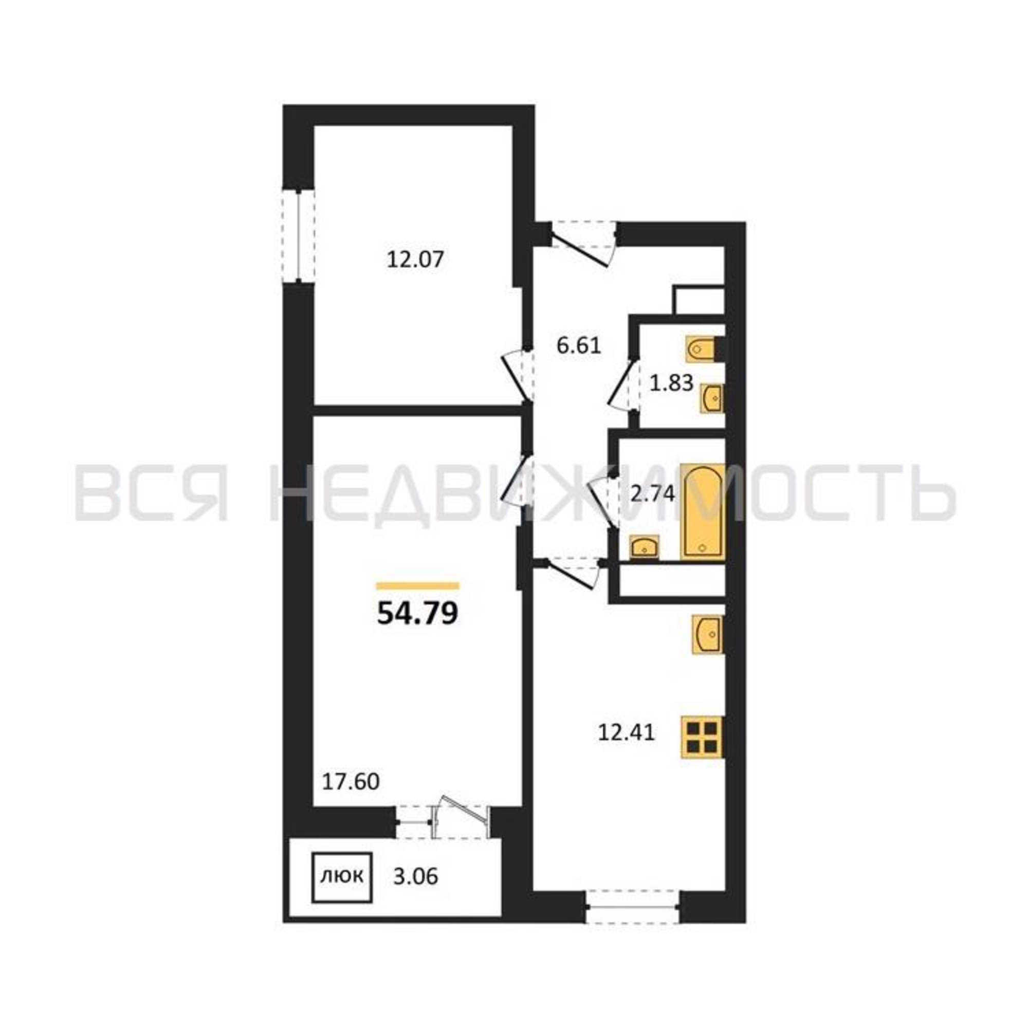 2-комнатная квартира, 54.79 м² 22/27 этаж ID объекта 79900