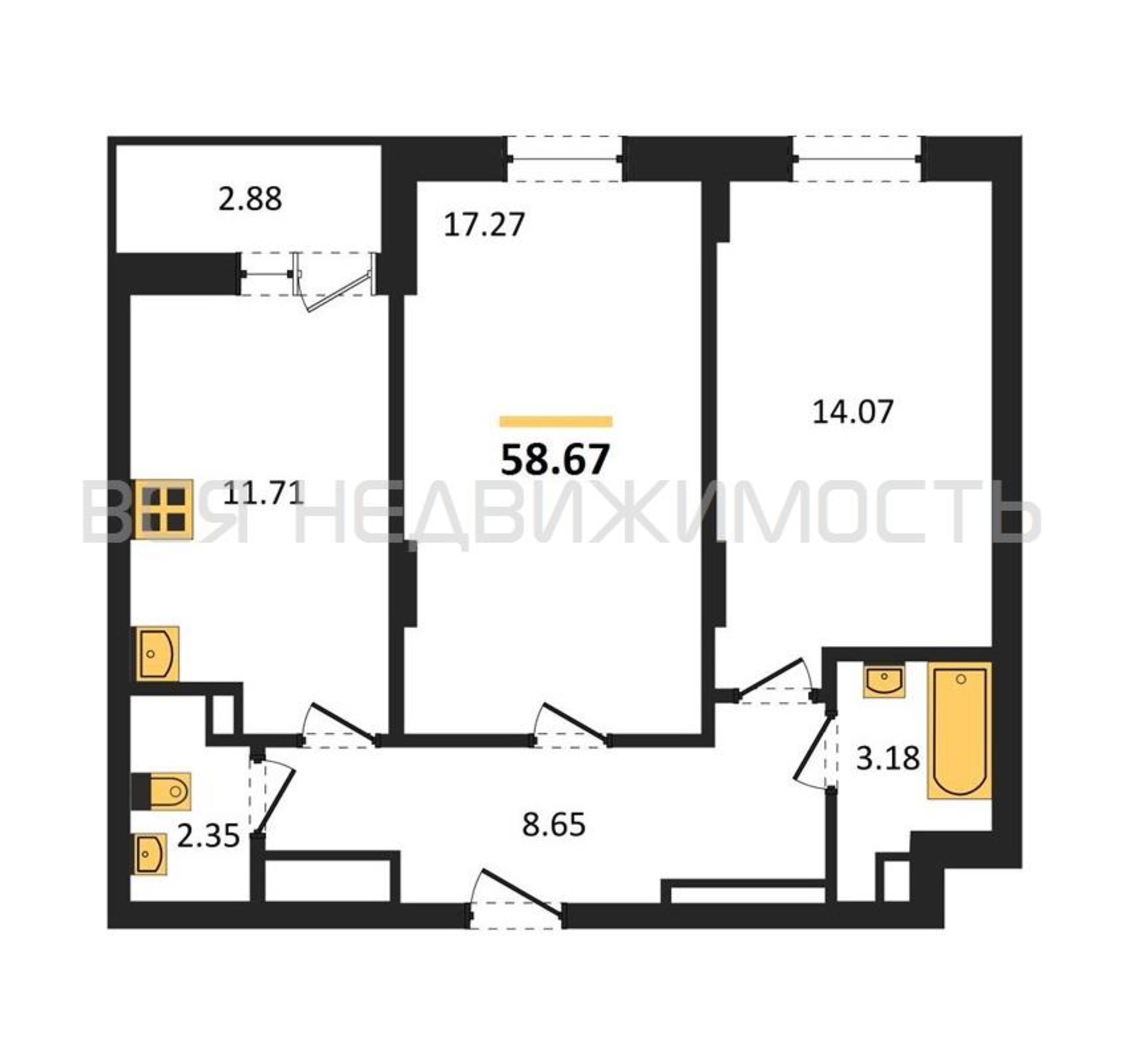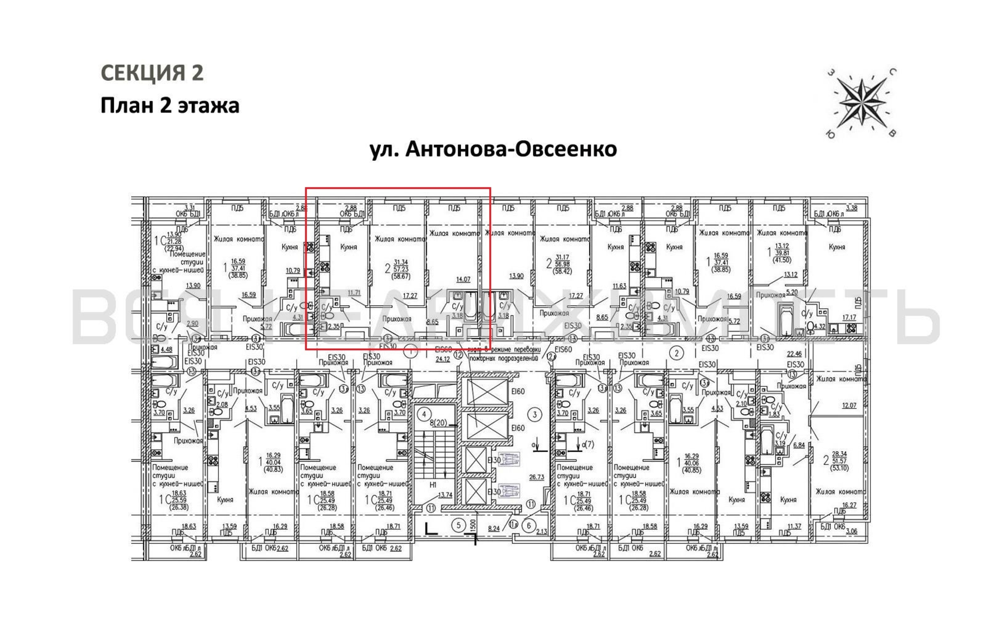 2-комнатная квартира, 58.67 м² 2/27 этаж ID объекта 79994