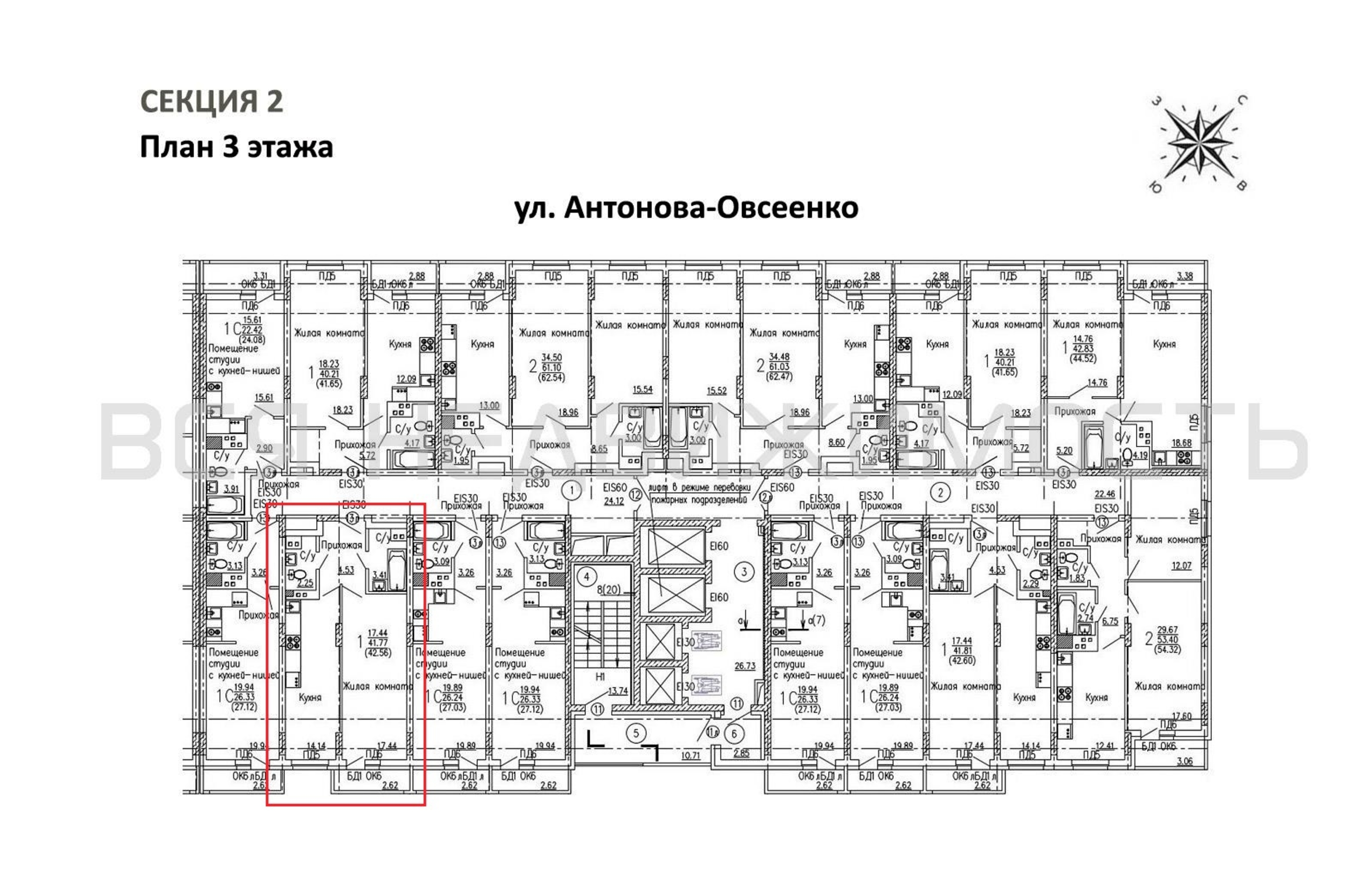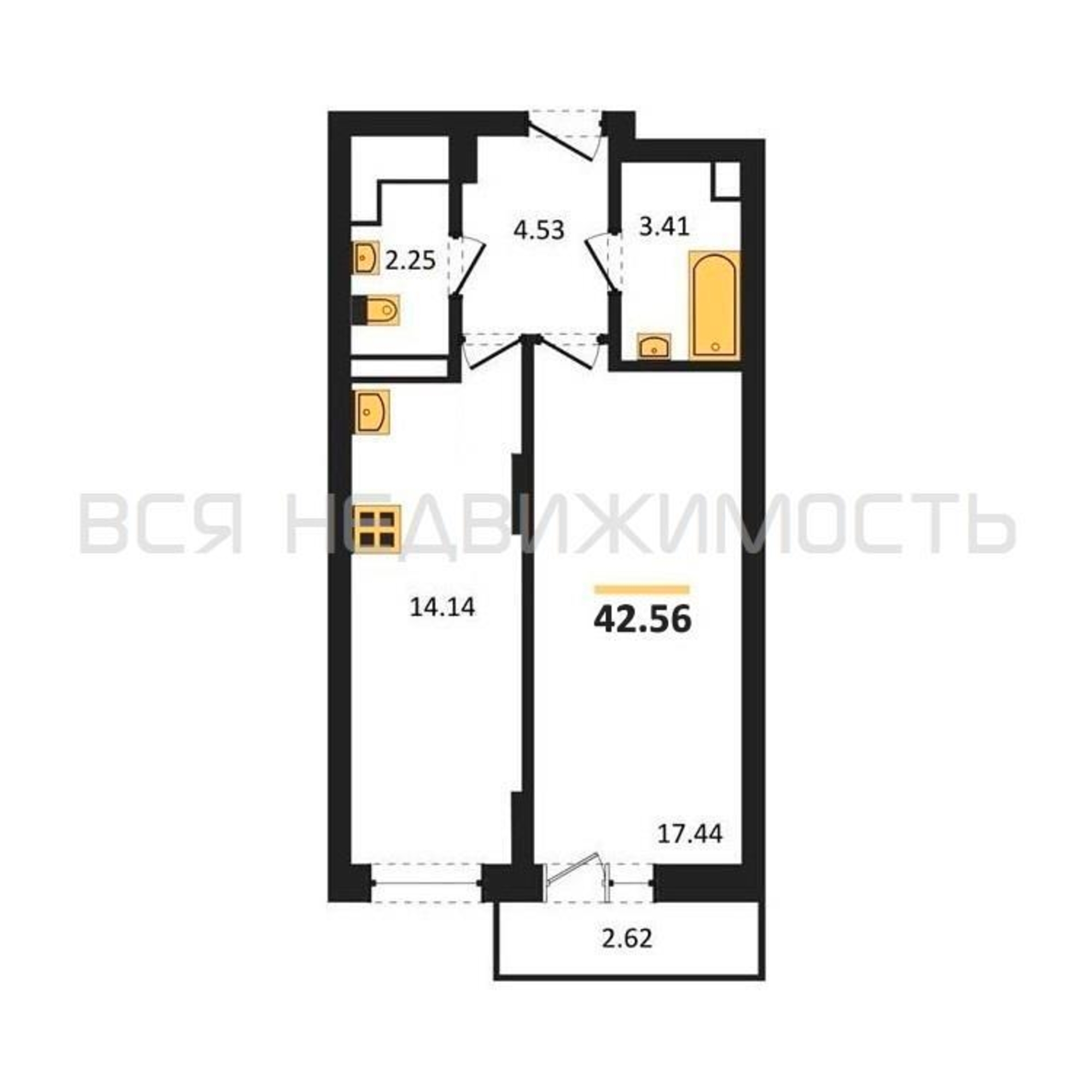 1-комнатная квартира, 42.56 м² 3/27 этаж ID объекта 80015