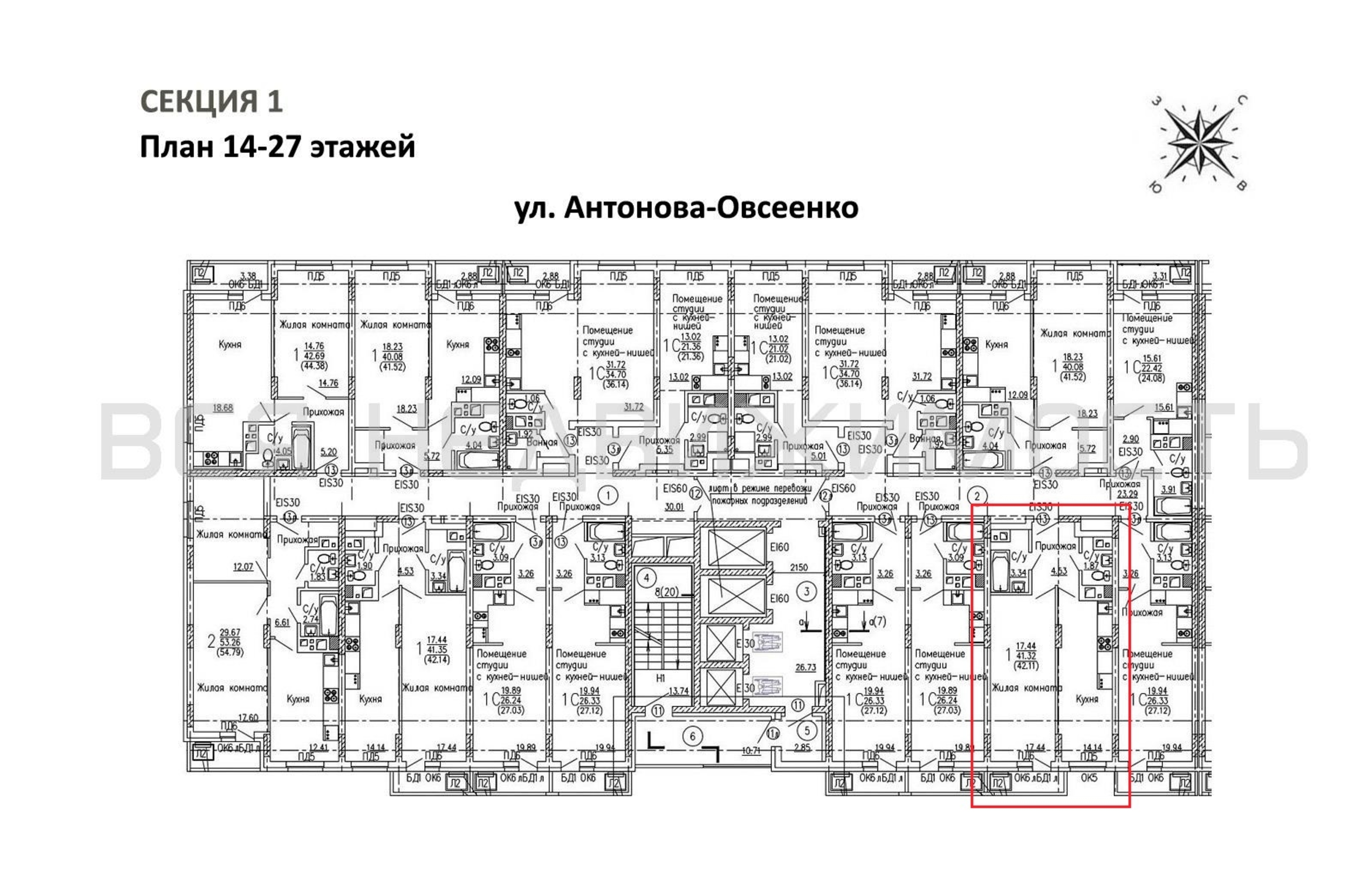 1-комнатная квартира, 42.11 м² 19/27 этаж ID объекта 80064