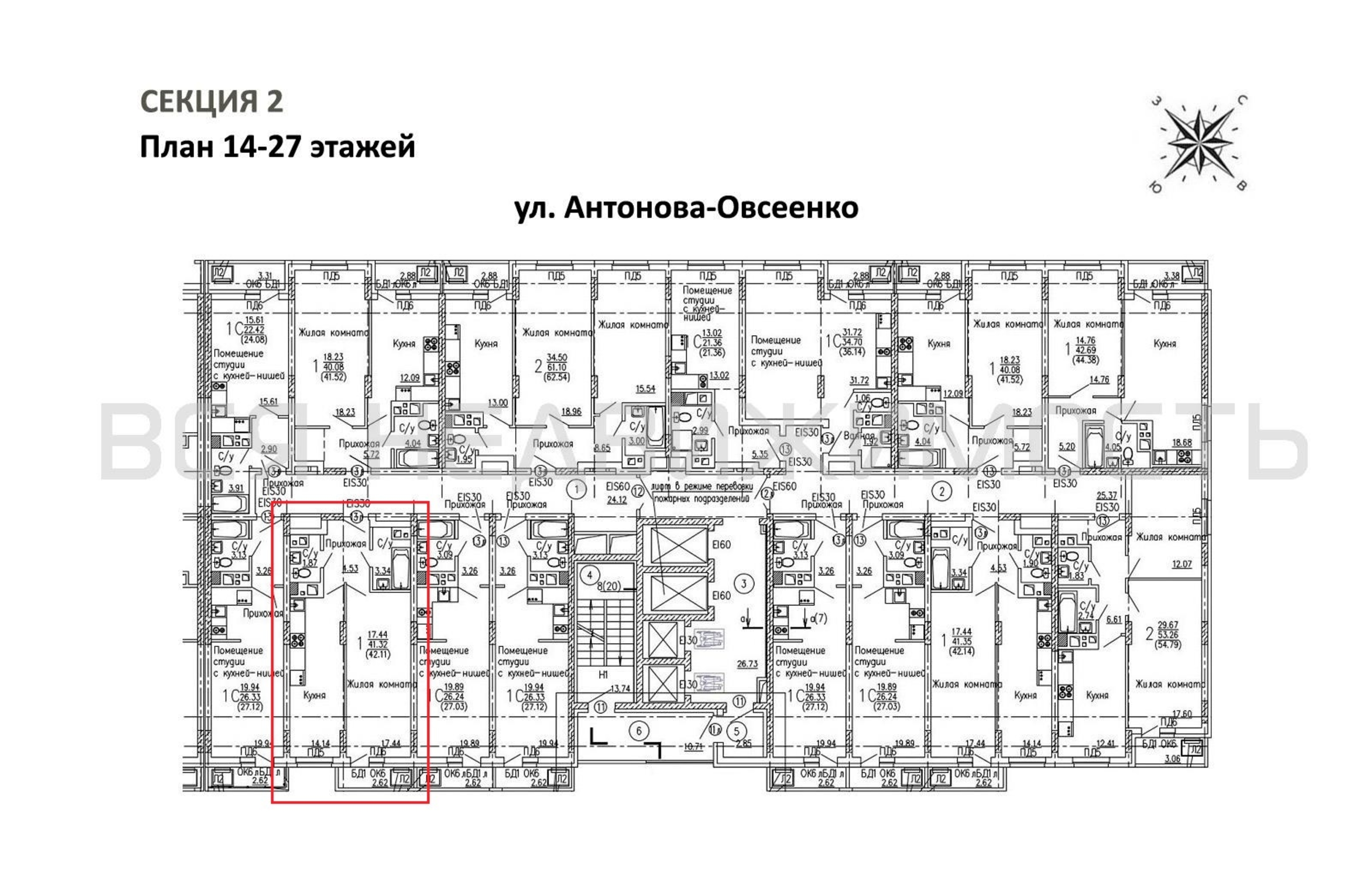 1-комнатная квартира, 42.11 м² 16/27 этаж ID объекта 80122