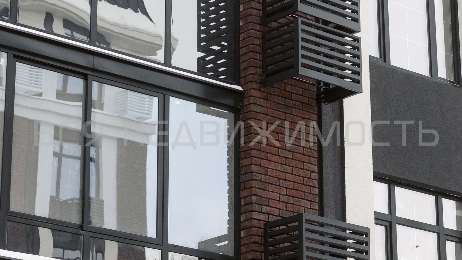 Внешний вид дома, сочетающий в себе красный кирпич и темный профиль остекления, органично вписывается в исторический контекст района, одновременно привнося современные ноты в окружающую застройку.