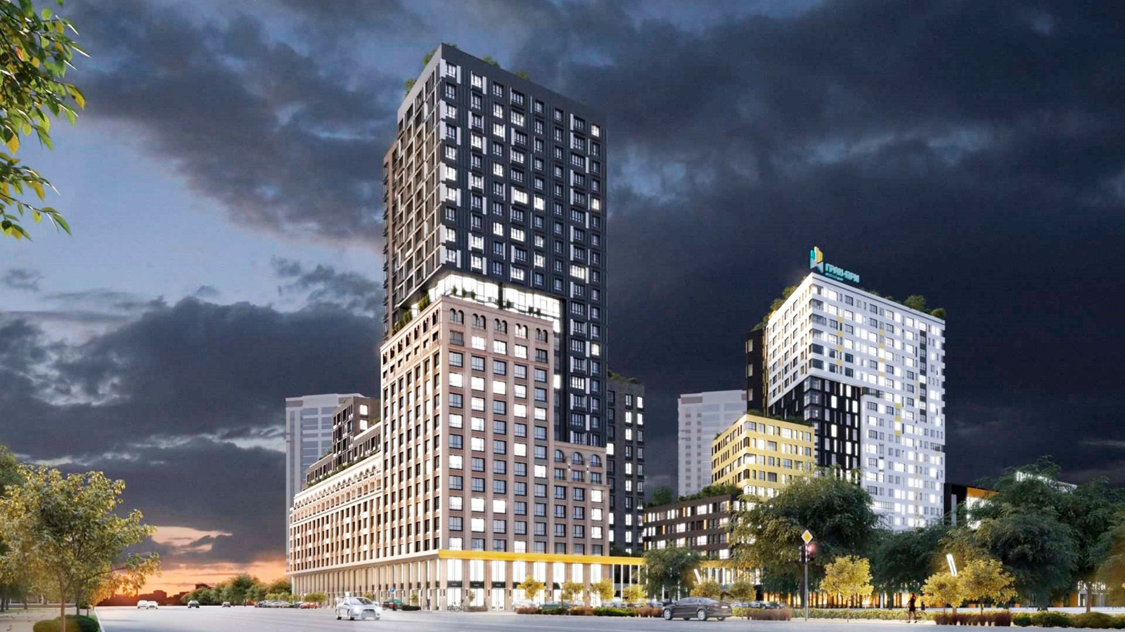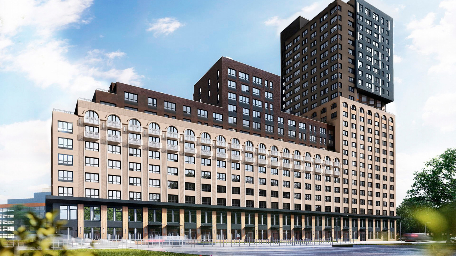 Вторая очередь комплекса Гран-При – это архитектурный микс респектабельной классики, устанавливающей стойкую связь с историческим контекстом города, и современного конструктивизма. Это достигается оригинальными архитектурными решениями: использованием фактурной кирпичной кладки фасадов, арочных окон, пилястр и эркеров в сочетании с переменной этажностью секций.